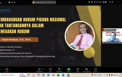 Penegakan hukum di Indonesia menghadapi tantangan kompleks yang melibatkan berbagai bidang hukum, mulai dari hukum pidana, perdata, hingga tata usaha negara. Untuk menjawab kebutuhan akan sinergi dan pembaruan penegakan hukum, Fakultas Hukum Universitas PGRI Semarang menggelar webinar bertajuk “Membangun Sinergi Penegakan Hukum di Indonesia: Perspektif Hukum Pidana, Perdata, dan Tata Usaha Negara” pada Rabu (4/6). […]