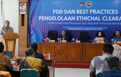 Lembaga Pengabdian dan Penelitian Masyarakat (LPPM) UPGRIS menyelenggarakan Focus Group Discussion (FGD) dan Best Practices Pengelolaan Ethical Clearance di Gedung Pusat lantai 2, Gedung Pusat (06/08). Menurut Ketua LPPM, Prof. Dr. Wiyaka, M.Pd., pertemuan ini untuk merealisasikan pembentukan komisi etik untuk memperkuat kualitas karya ilmiah. Melalui Komisi Etik tersebut kelak untuk menilai apakah penelitian layak […]