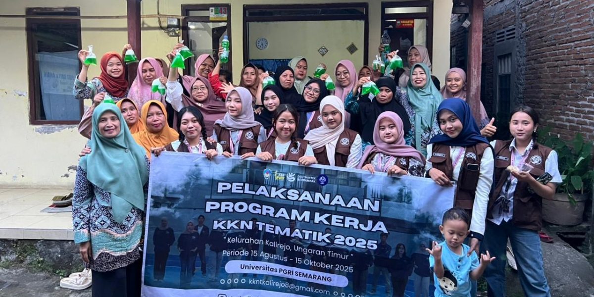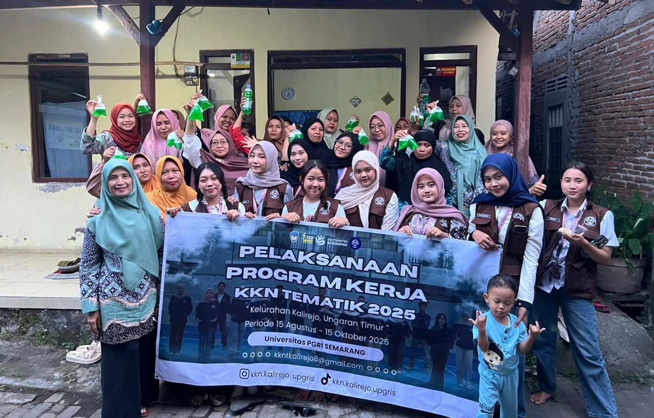 Mahasiswa Universitas PGRI Semarang yang tergabung dalam program Kuliah Kerja Nyata Tematik (KKN-T) Kelompok 08 melakukan pelatihan membuat sabun cuci piring di Kelurahan Kalirejo, Kecamatan Ungaran Timur, Kabupaten Semarang pada Minggu (28/9/2025). Kegiatan ini bertujuan untuk memberikan edukasi mengenai pembuatan sabun cuci piring yang hemat, higienis, dan ramah lingkungan.