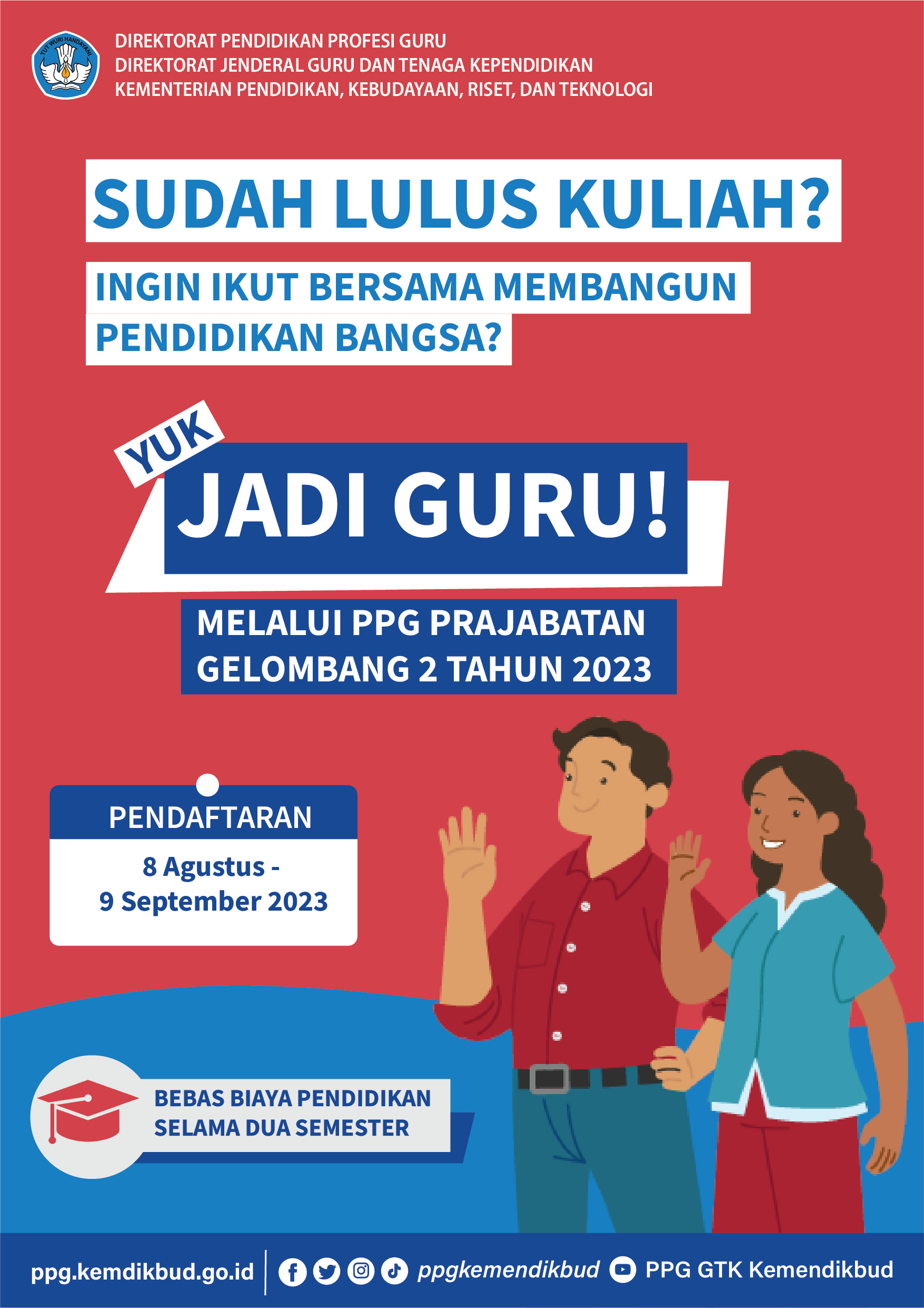 https://ppg.kemdikbud.go.id/news/pembukaan-pendaftaran-ppg-prajabatan-gelombang-2-tahun-2023?fbclid=IwAR39ZMM8fMATQGssrgdPpllqZXHyjbaOoN_v_bxYS0W9h-_1orLLqLt77m0
