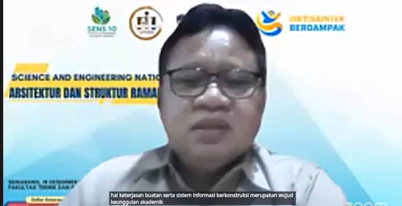 Komitmen tersebut tercermin dalam pelaksanaan Science and Engineering National Seminar (SENS-10) yang diselenggarakan oleh Fakultas Teknik dan Informatika secara daring pada 18 Desember 2025. Seminar nasional ini mengangkat tema “Arsitektur dan Struktur Ramah Lingkungan” dan dibuka secara resmi oleh Dekan Fakultas Teknik dan Informatika, Dr. Ir. Ibnu Toto Husodo, S.T., M.T.