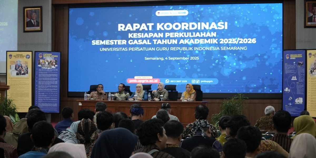 Hal itu disampaikan oleh Rektor UPGRIS, Dr. Sri Suciati, M.Hum, dalam Rapat Koordinasi Kesiapan Perkuliahan Semester Gasal Tahun akademik 2025/2026 di Gedung Pusat lantai 7, pada September 2025.