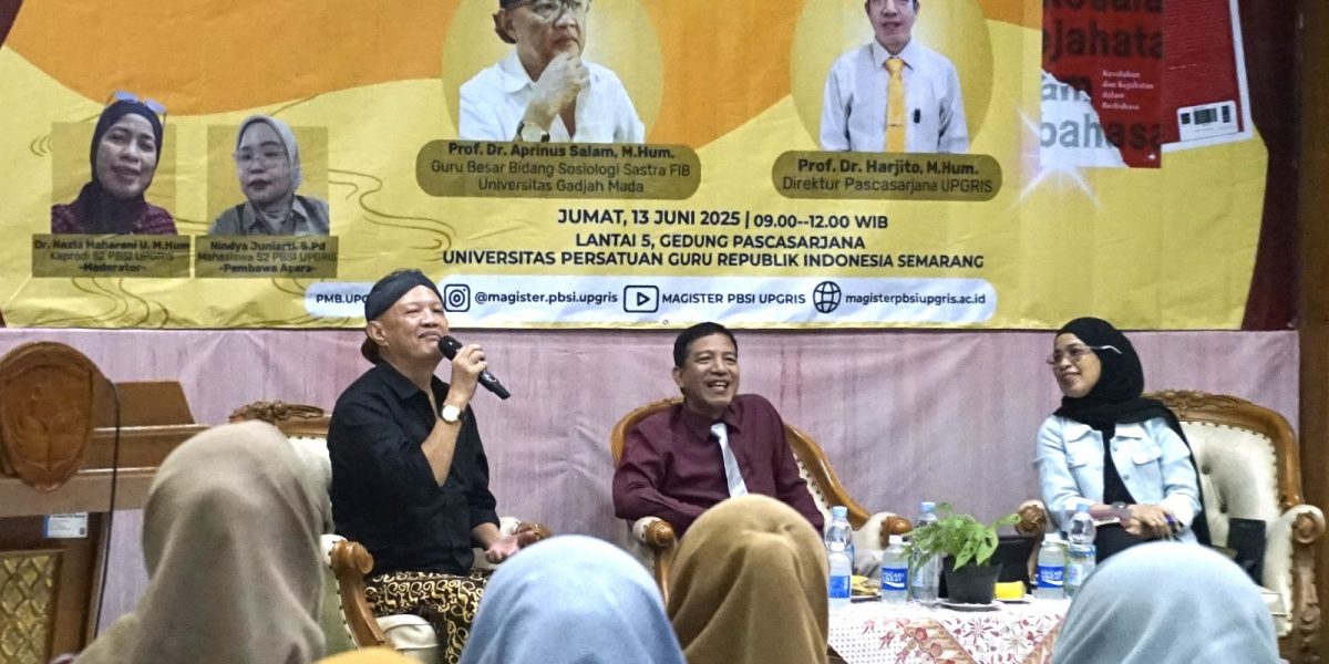 “Tindakan berbahasa, baik itu secara verbal diucapkan maupun melalui kata-kata di media sosial, bisa memicu kasus hukum. Terutama jika sudang menyinggung hal-hal yang berkaitan dengan agama, suku, pelecehan, maupun makian kepada institusi negara,” ucap. Prof. Aprinus Salam dalam acara Seminar dan Bedah Buku “Kesalahan dan Kejahatan dalam Berbahasa” (Kompas, 2024) yang diselenggarakan oleh S2 Pendidikan Bahasa dan Sastra Indonesia (PBSI) UPGRIS, di Gedung Pascasarjana, baru-baru ini.