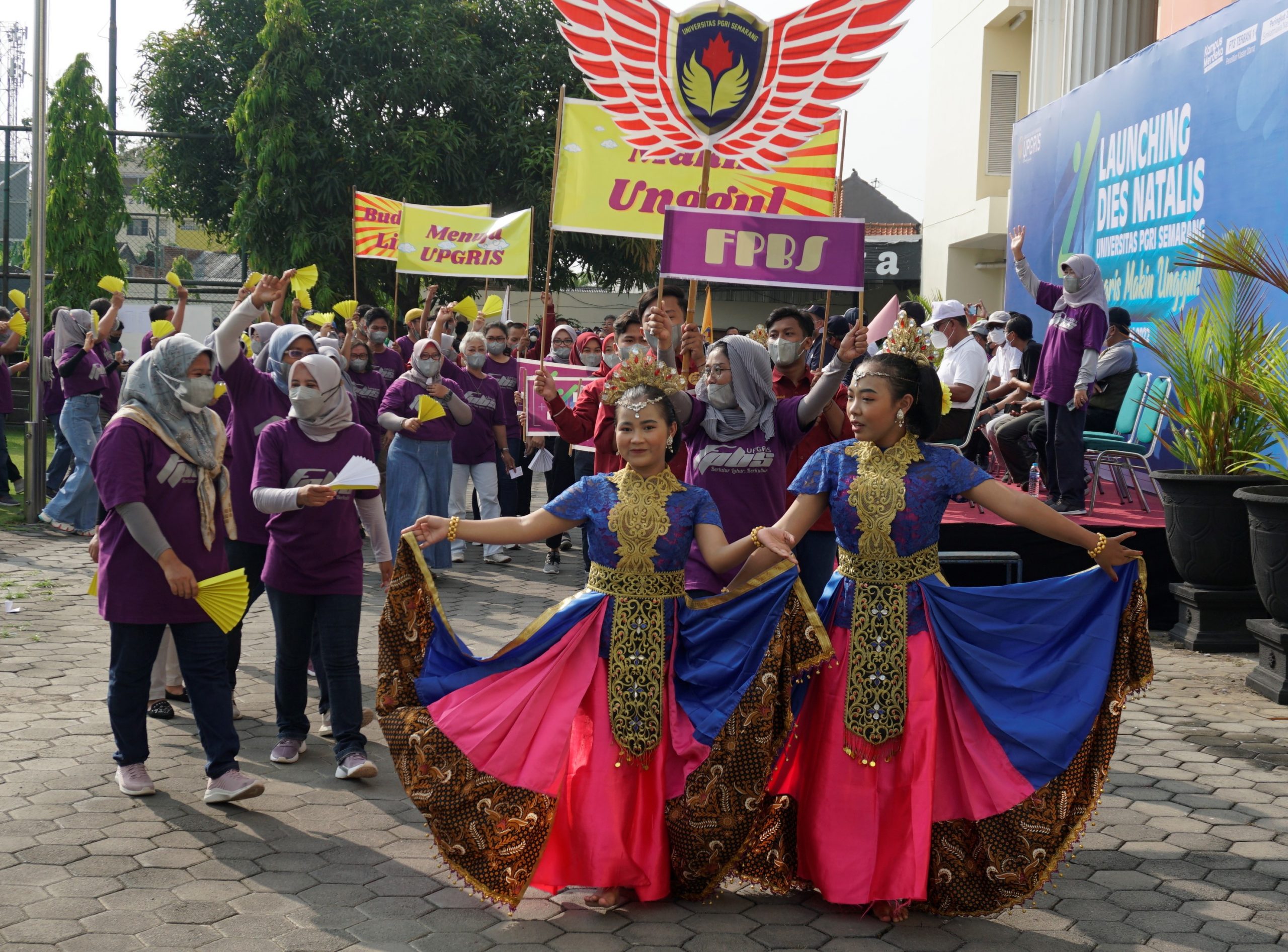 11 Mei 2022, di area lapangan kampus IV Universitas PGRI Semarang, Jl.Gajah. Hari yang membahagiakan untuk momen yang juga membanggakan. Seluruh sivitas akademika Universitas PGRI Semarang tengah mengikuti pembukaan rangkaian acara peringatan Dies Natalis ke 41 UPGRIS. Diawali senam bersama, acara dilanjutkan dengan pagelaran defile dari tiap fakultas, program, dan bagian.