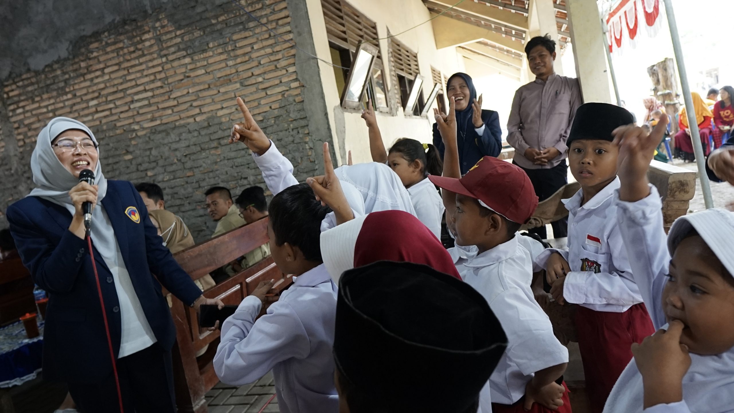 Sambil sesekali mengajak para siswa untuk menyanyikan yel-yel dan lagu-lagu penyemangat, Suci bercerita tentang cita-cita yang dekat dengan anak-anak dan sosok-sosok sukses tersebut mudah dibayangkan.