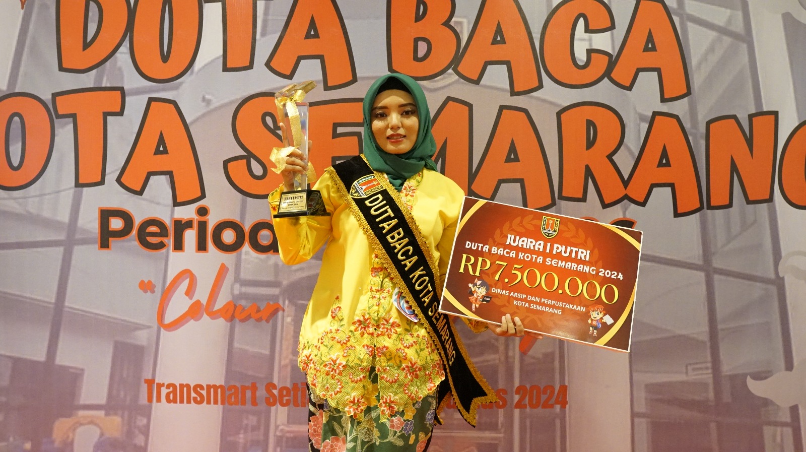 Mahasiswa Universitas PGRI Semarang, Aisha Reavashti Alulazaki didaulat sebagai pemenang Duta Baca Kota Semarang.