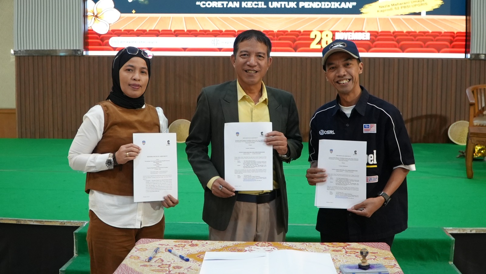“Dari sini mahasiswa bisa belajar tentang potensi-potensi yang bisa diambil jika kelak mahasiswa lulus. Dunia penerbitan masih menjanjikan dari segi ekonomi. Apalagi tenaga kerja yang diperlukan di sini rata-rata diambil dari para lulusan yang menguasai bahasa dan sastra,” ucapnya. Dalam acara tersebut juga dilakukan pula proses penandatanganan “Memorandum of Agreement” (MoA) antara S2 PBSI UPGRIS dengan Penerbit Gradien Mediatama.