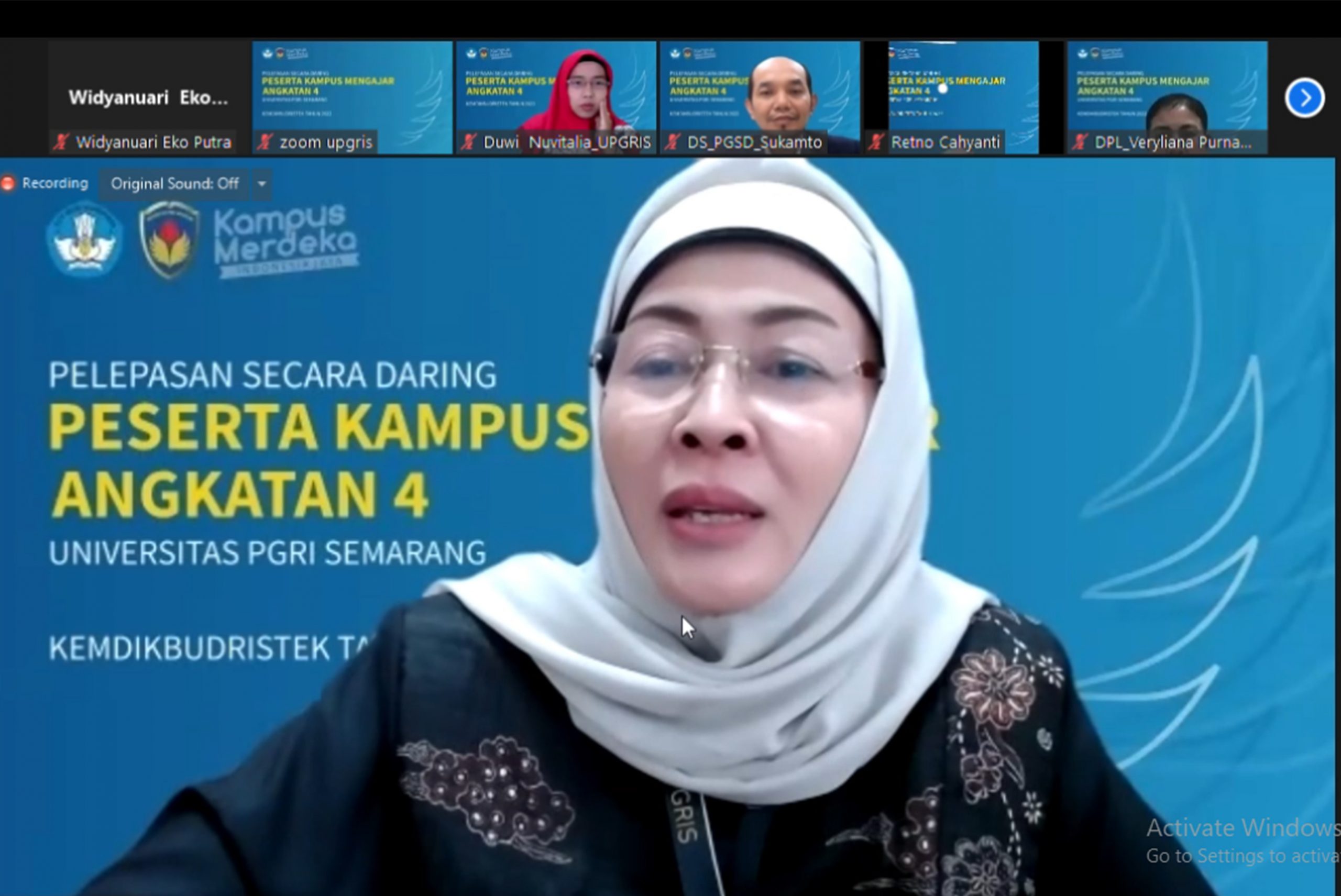 Sementara itu, Ketua Panitia Acara, Sukamto, M.Pd., menyampaikan jumlah peserta kampus mengajar angkatan 4 berasal dari 12 program studi. “Jumlah peserta terbanyak dari PGSD, yaitu 31 mahasiswa, disusul pendidikan Matematika (15), BK (13), PG PAUD (2), Biologi (3), Fisika (1), PTI (4), PBSI (2), PBI (3), PBSD (7), Manajemen (1), PPKn (1).”
