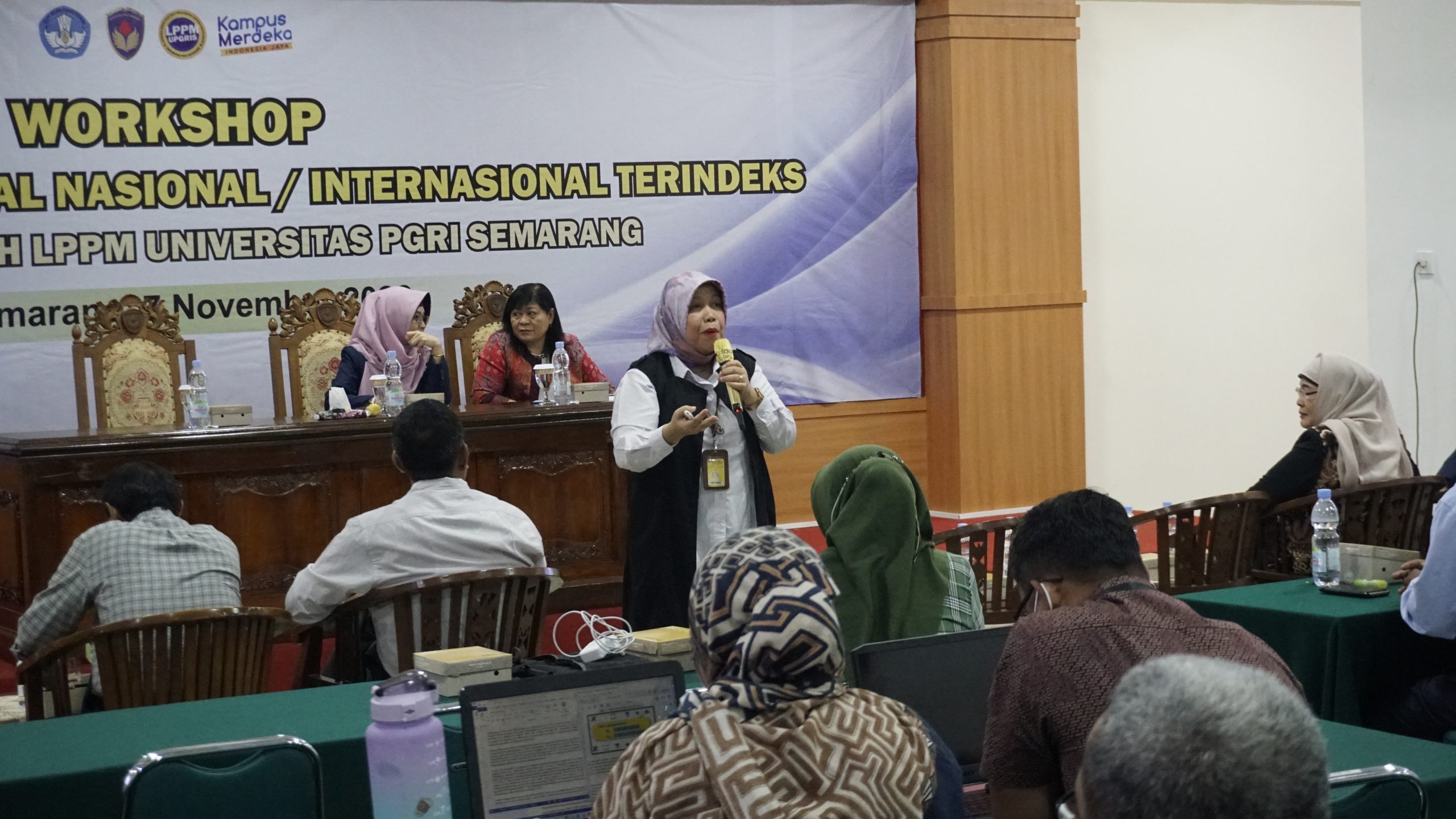 “The honor of a lecturer and academician is earned through the publication of scientific articles in reputable journals. If lecturers are able to write articles in international journals, then their expertise will be recognized internationally,” said Prof. Dr. Sucihatiningsih Dian Wisika Prajanti, M.Sc., at the Indexed National/International Journal Article Writing Workshop organized by UPGRIS Institute of Research and Community Services, in 1st floor, B Building, UPGRIS Campus 1 on November 7th, 2022.