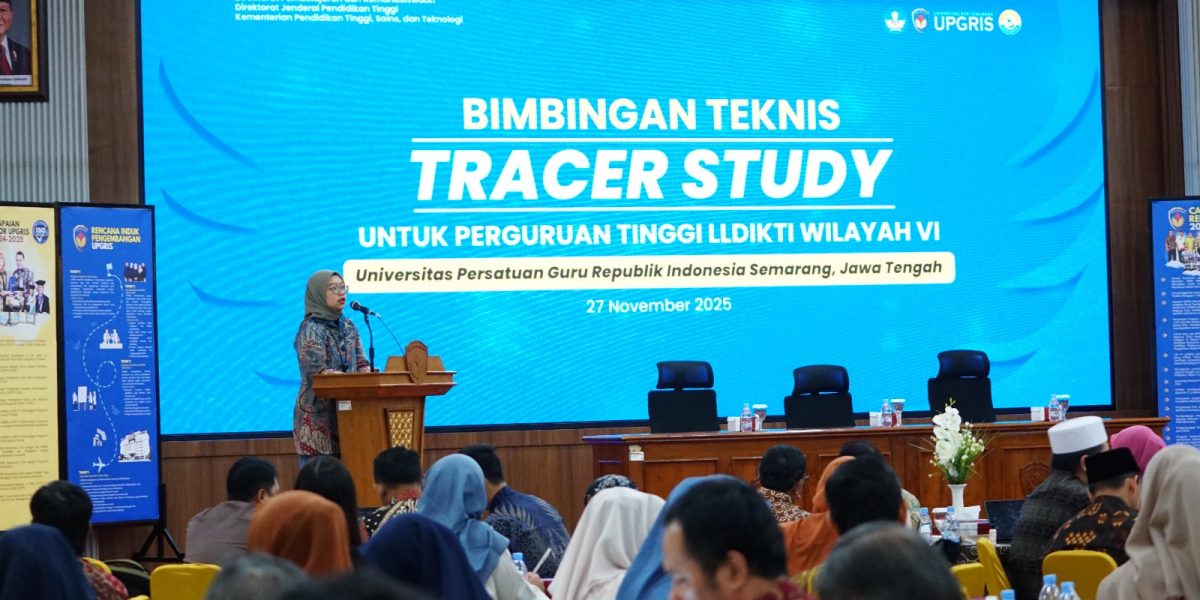 Hal itu disampaikan oleh Kepala LLDIKTI Wilayah VI, Prof. Dr. Ir. Aisyah Endah Palupi, M.Pd., dalam acara Bimbingan Teknis Tracer Study untuk Perguruan Tinggi LLDIKTI Wilayah VI yang diselenggarakan oleh Direktorat Pembelajaran dan Kemahasiswaan, Dirjendikti, Kemdiktisaintek, di Universitas Persatuan Guru Republik Indonesia Semarang (UPGRIS), Gedung Pusat Lantai 7, 27 November 2025. UPGRIS dipercaya menjadi tuan rumah dalam helatan tersebut.
