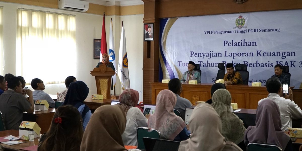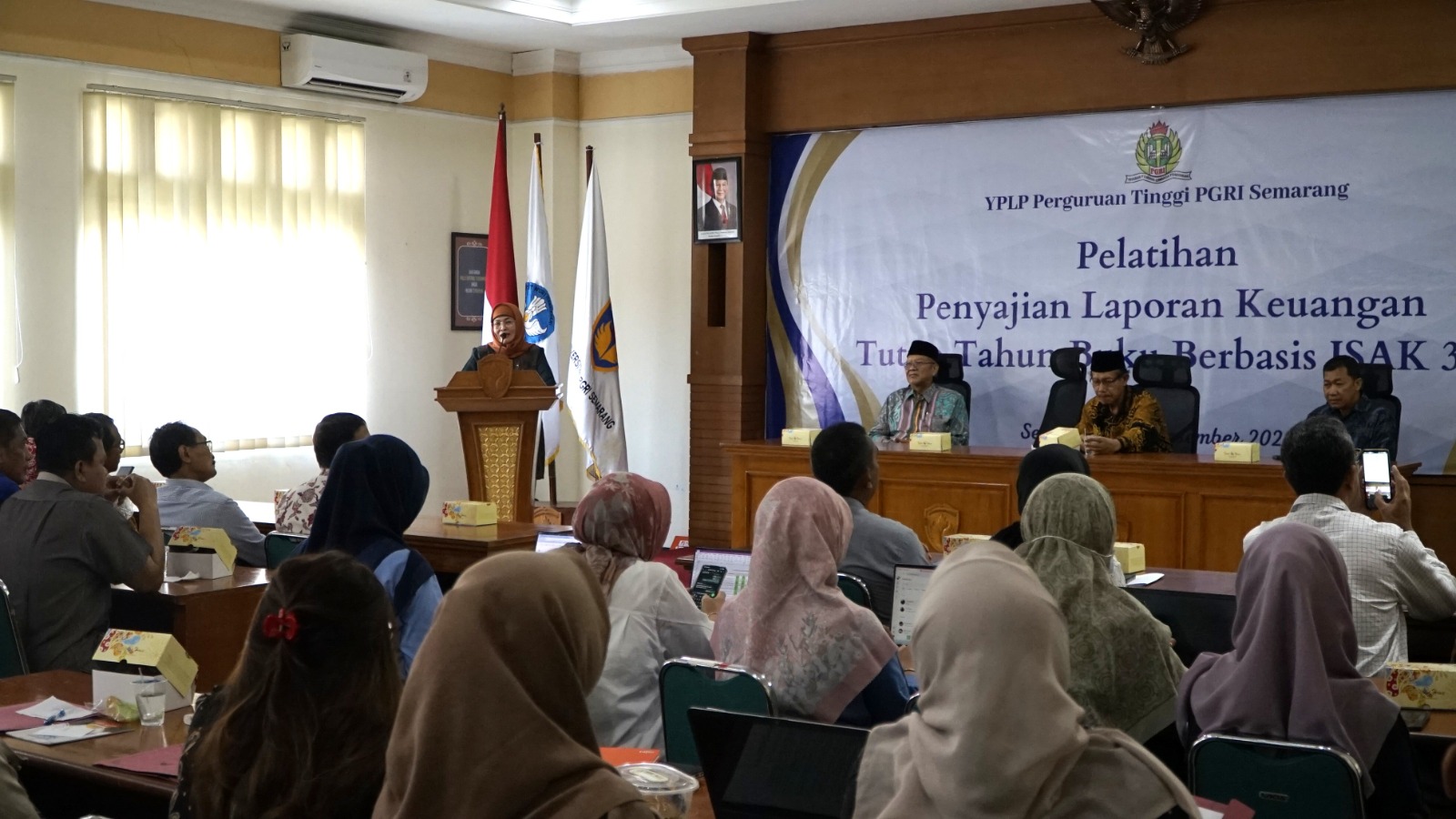 Pernyataan tersebut disampaikan oleh Rektor Universitas Persatuan Guru Republik Indonesia Semarang, Dr. Sri Suciati, M.Hum, saat menyampaikan sambutan dalam acara Pelatihan Penyajian Laporan Keuangan Tutup Tahun Buku Berbasis ISAK 335 yang diselenggarakan oleh Yayasan Pembina Lembaga Pendidikan Perguruan Tinggi Persatuan Guru Republik Indonesia Semarang pada 24 Desember 2025 di Gedung Pusat lantai 2 UPGRIS.